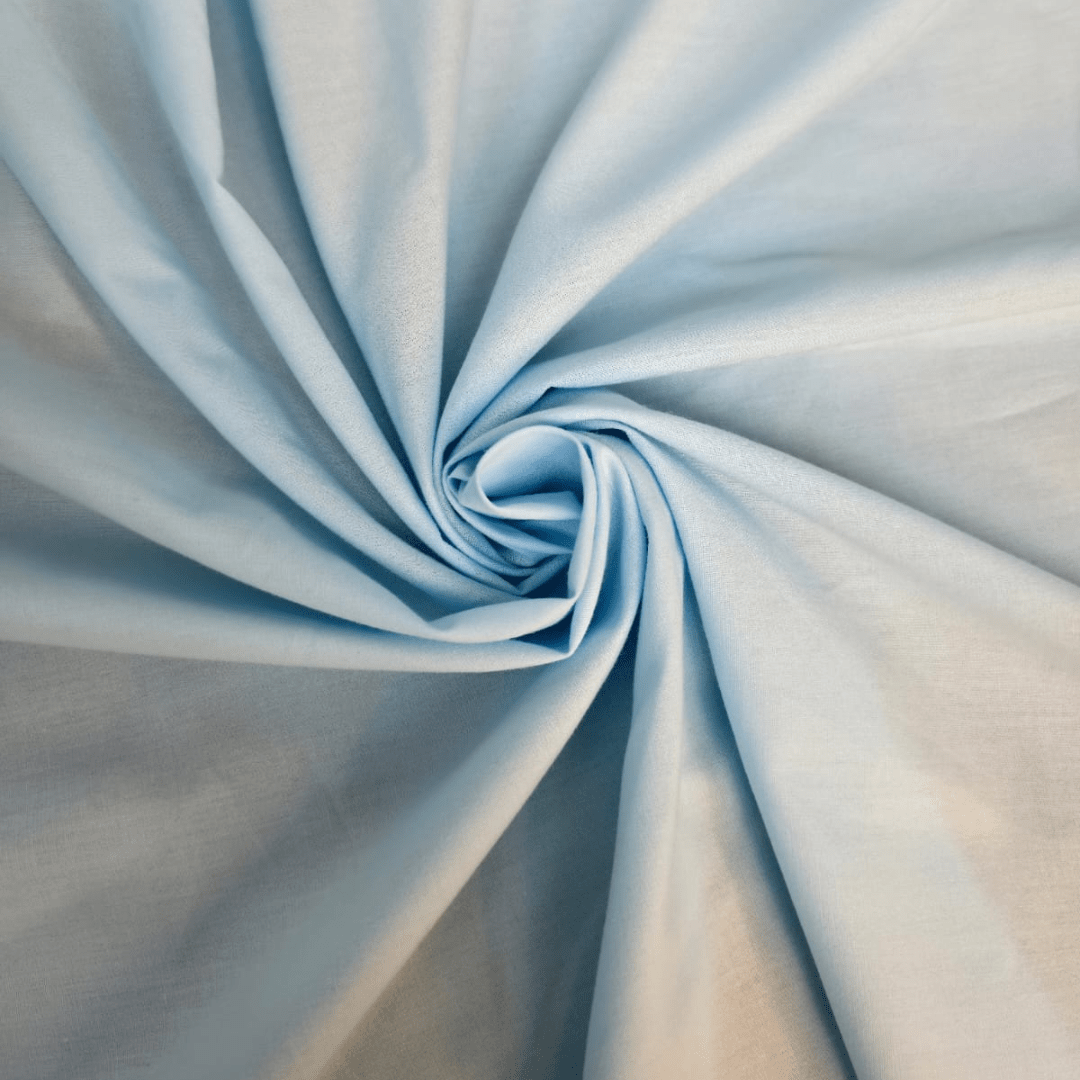 50% algodão, 50% poliéster; gramatura 120 g/m²; largura 1,50m.